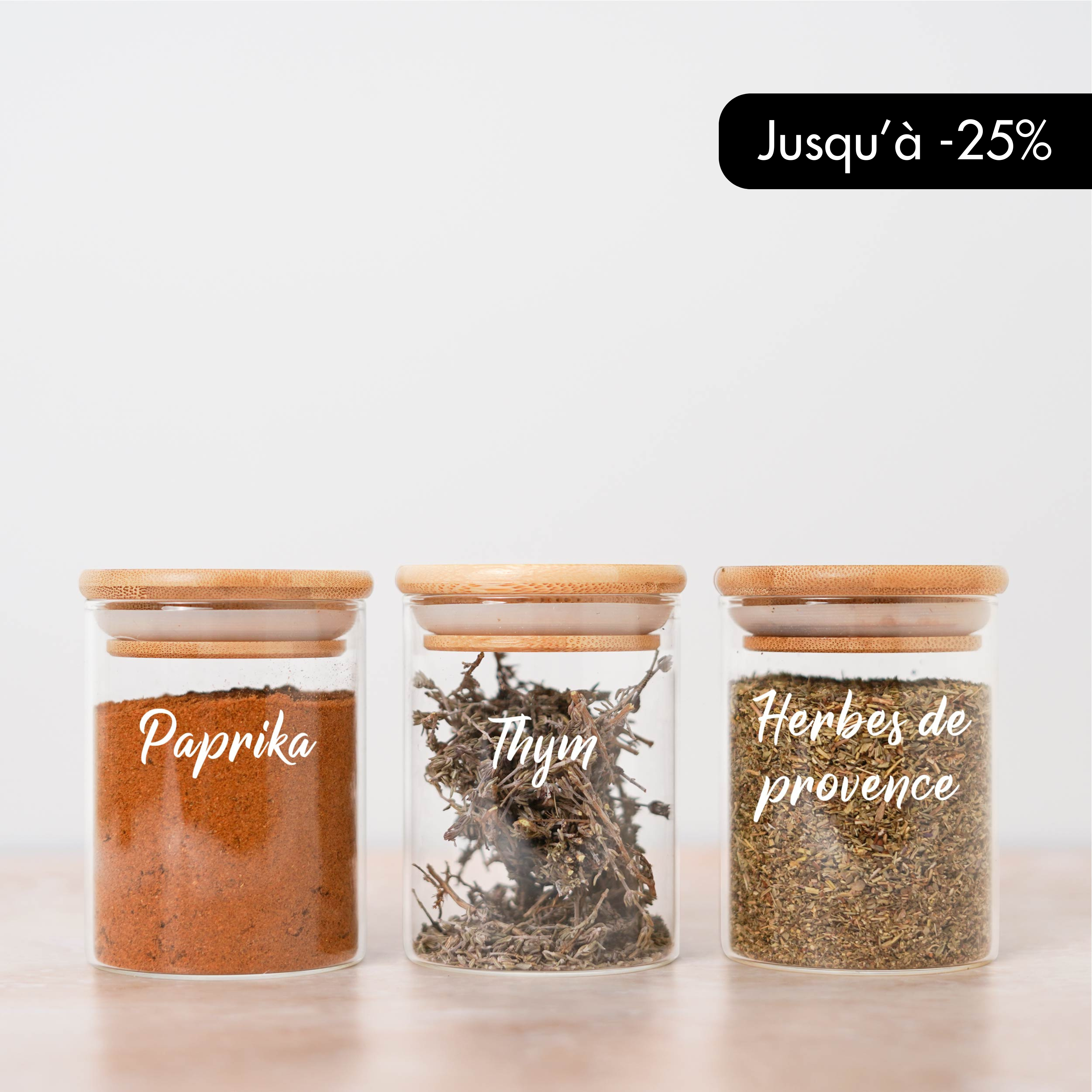 Nos étiquettes manuscrites en vinyle pour pots à épices apporterons organisation et style à vos épices.