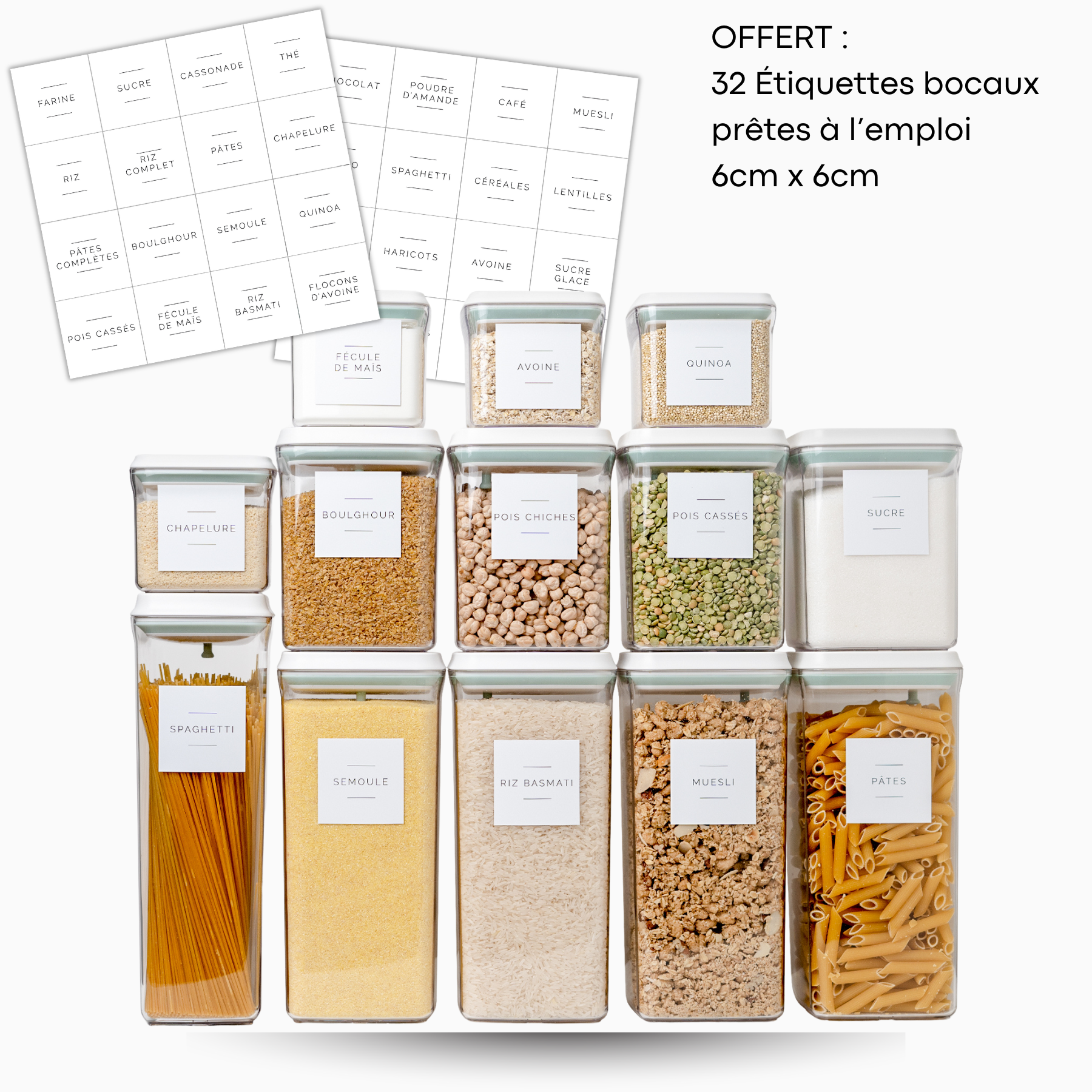 Ce pack de 13 boîtes vous permettra de stocker vos aliments secs du quotidien. Idéal pour une cuisine organisée et un usage pratique avec leur bouton poussoir !