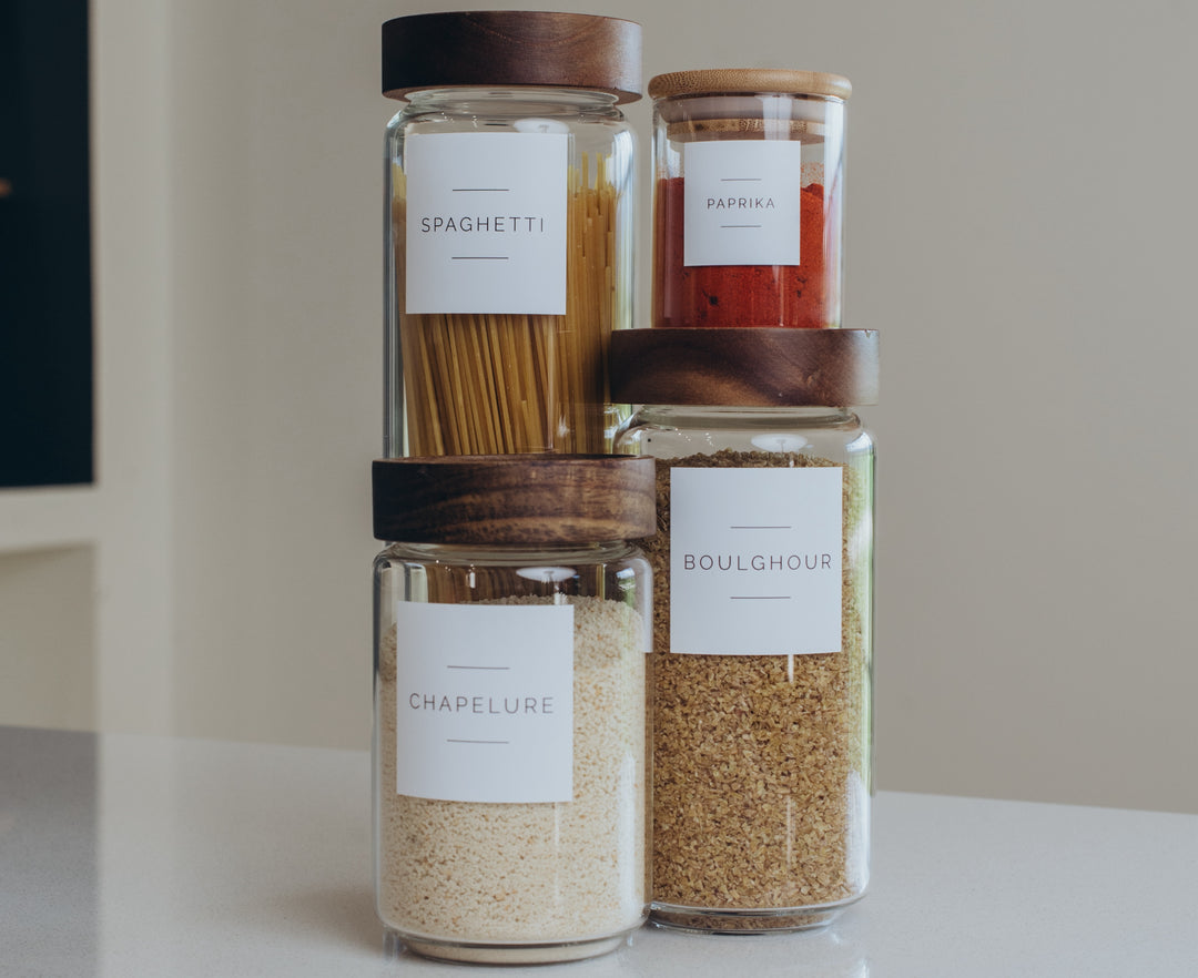 Nos étiquettes minimalistes vous feront gagner du temps, de l'argent et de l'espace. Pour en finir de chercher un ingrédient, étiquetez-les.