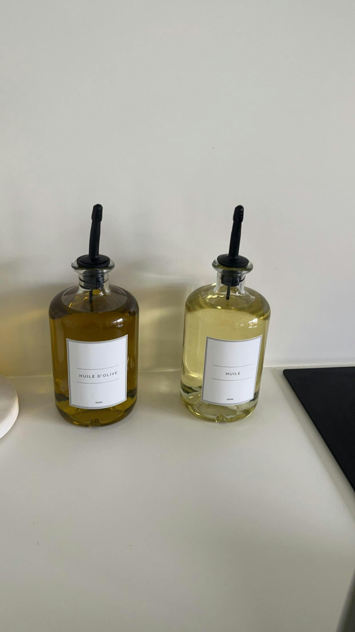 Oubliez les bouteilles collantes. Avec un huilier en verre, votre plan de travail reste classe, net, ordonné. Comme votre esprit.